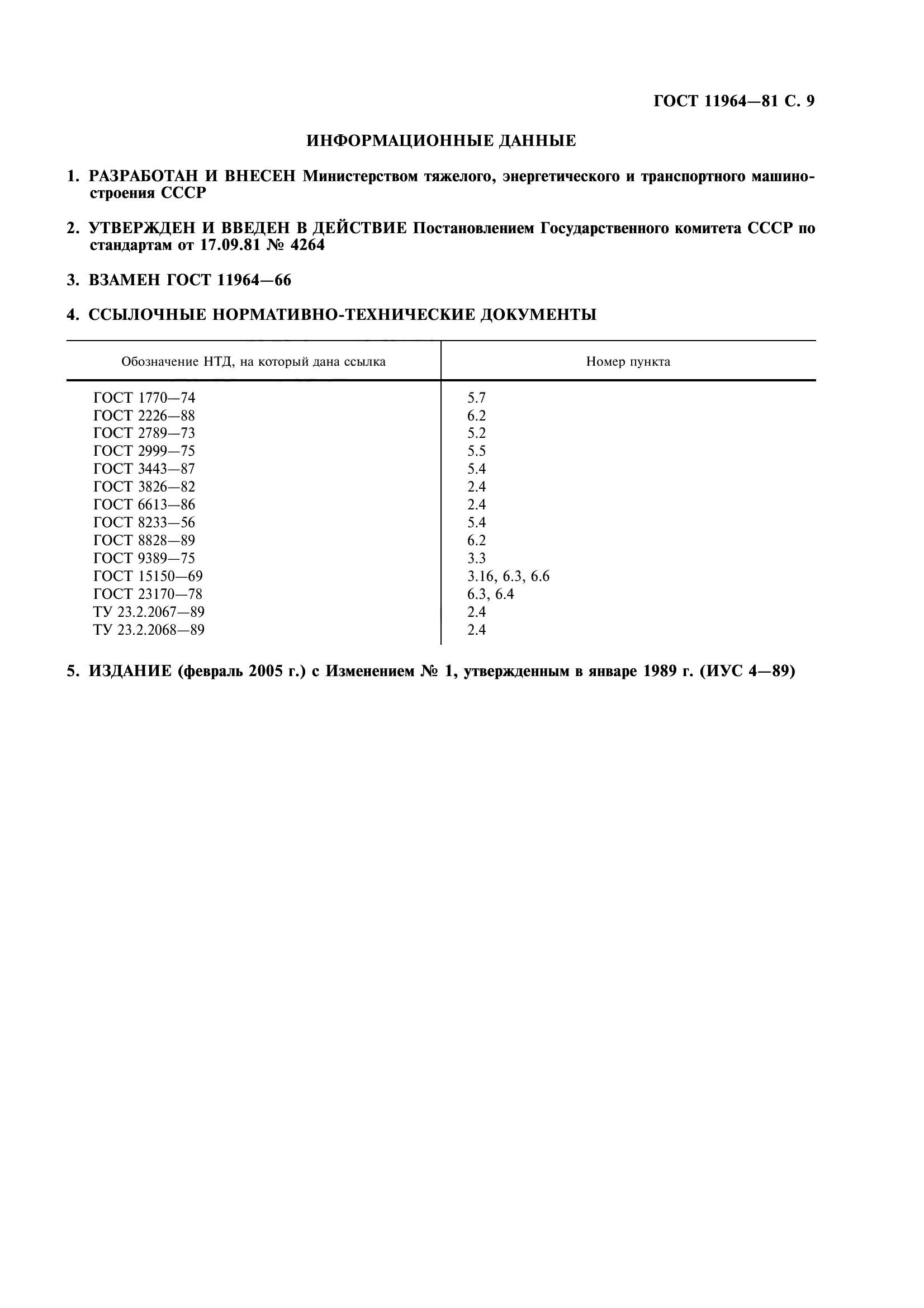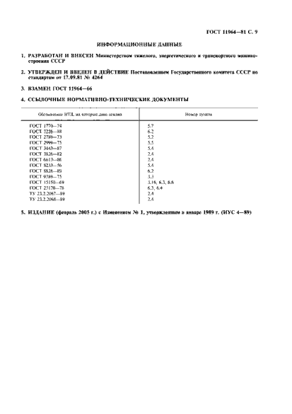 Изменение №1 к ГОСТ 11964-81 от 01.06.1989 (текст интегрирован в текст или описание стандарта)