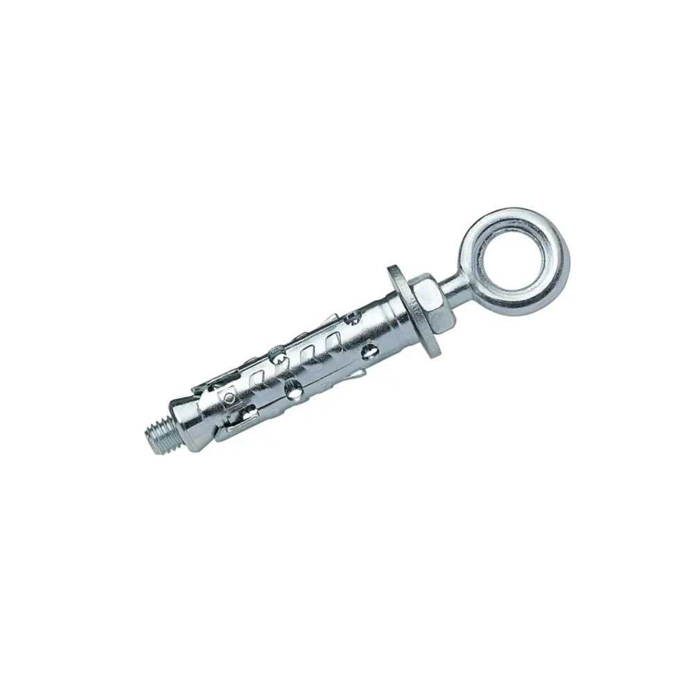 Анкер LE/O з кожухом і кільцем - це механічний розпірний анкер з цинковим покриттям, призначений для монтажу в бетон або повнотілу цеглу, який складається з металевого стрижня з розпірним кожухом і закріпленим кільцем (оком) на кінці.