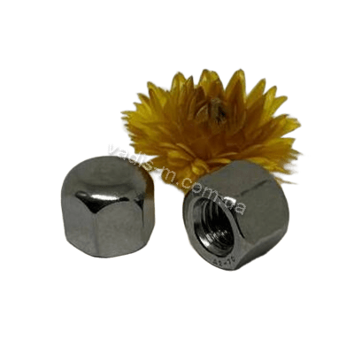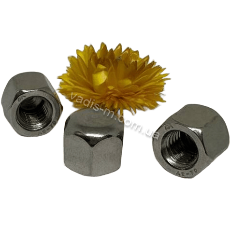 Гайка ковпачкова це гайка, що прикривають різьбову частину як декоративно, так і з метою захисту різьби. DIN 917 можна використовувати в місцях з обмеженим простором.