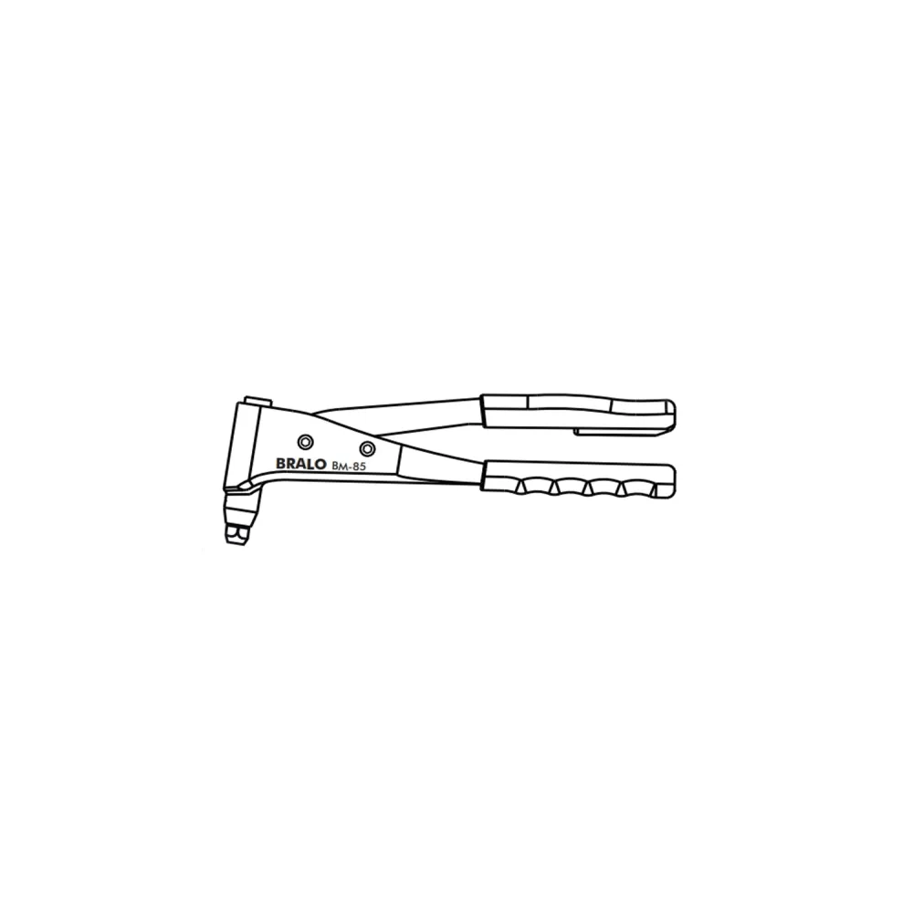 Пістолет ручний для заклепок BM-85 Bralo - легкий, простий у використанні та обслуговуванні, ергономічний заклепочник. Це інструмент, який підходить для будівельних майданчиків, технічного обслуговування, ремонту та легких робіт, оскільки він має проміжний важіль з мультиплікаційним ефектом, що зменшує зусилля користувача.