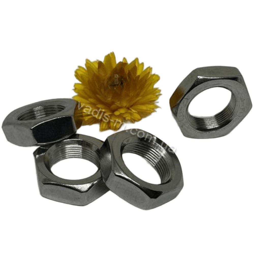 Гайка шестигранная низкая крепёжное изделие с резьбовым отверстием, что препятствует самоотвинчиванию сопряженных крепежей увеличенной высоты или стандартной.