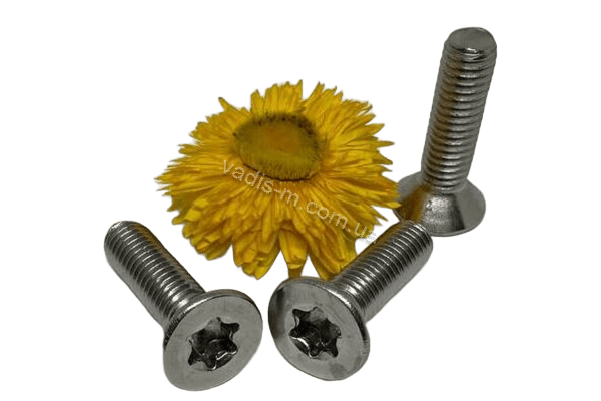 Болт з потайной головкой это крепление, состоящее из потайной головкой под torx та метрической резьби.